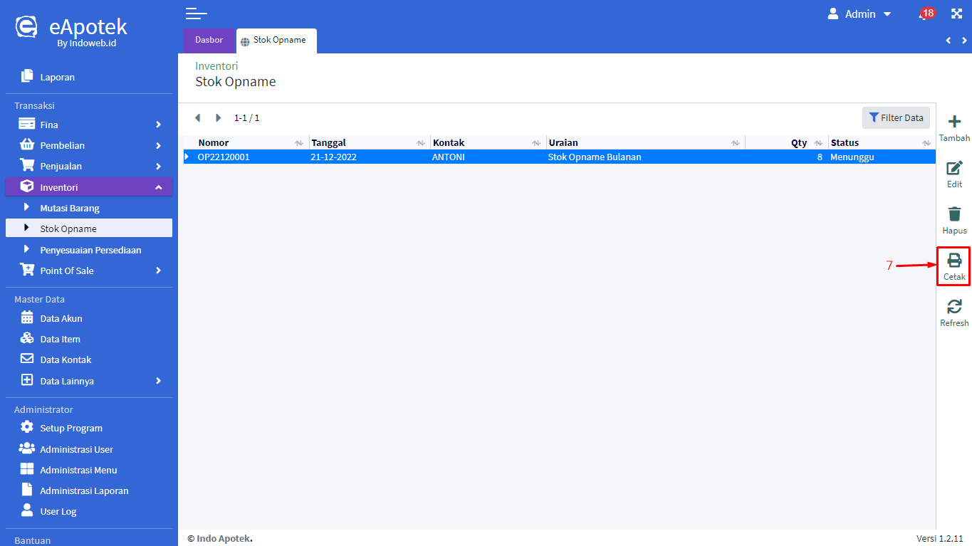 - Jika sudah sesuai klik [Tampilkan]. Maka akan tampil daftar stok opname berdasarkan filter yang dipilih