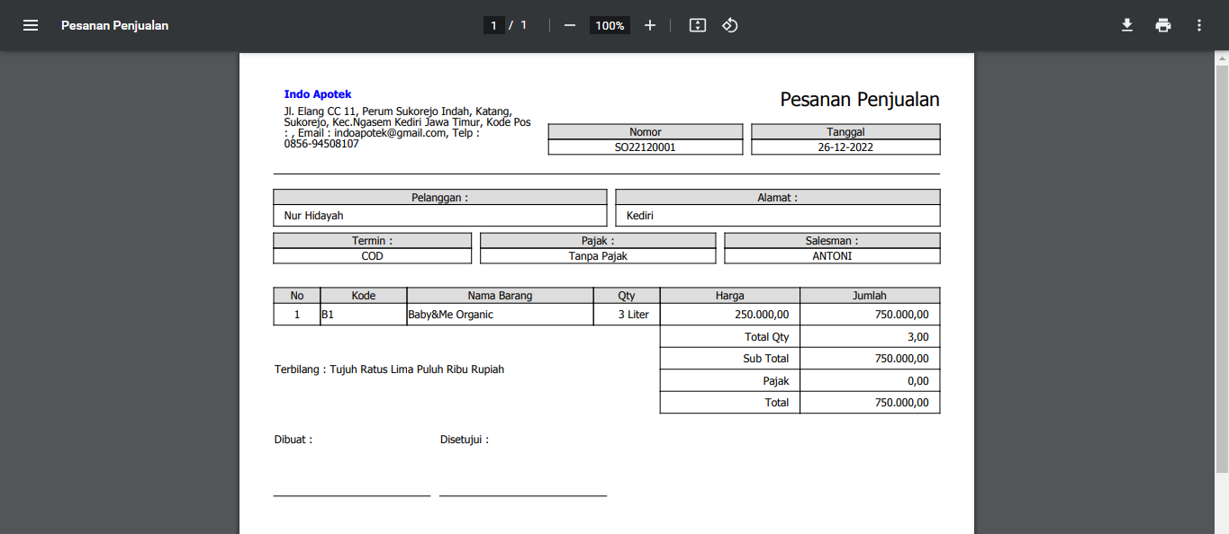 - Cek Order Penjualan sudah berhasil