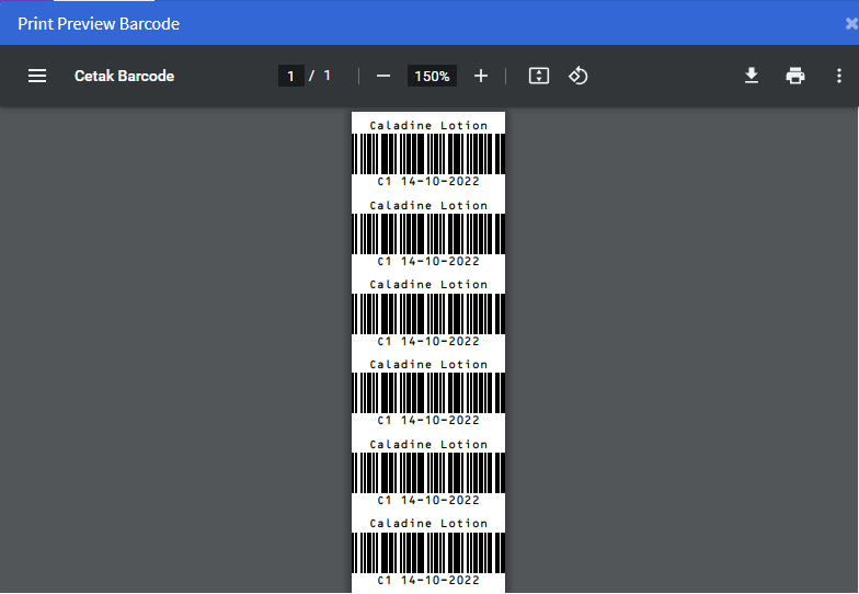 - Tampil Print Preview Barcode, jika sudah sesuai klik [Print]