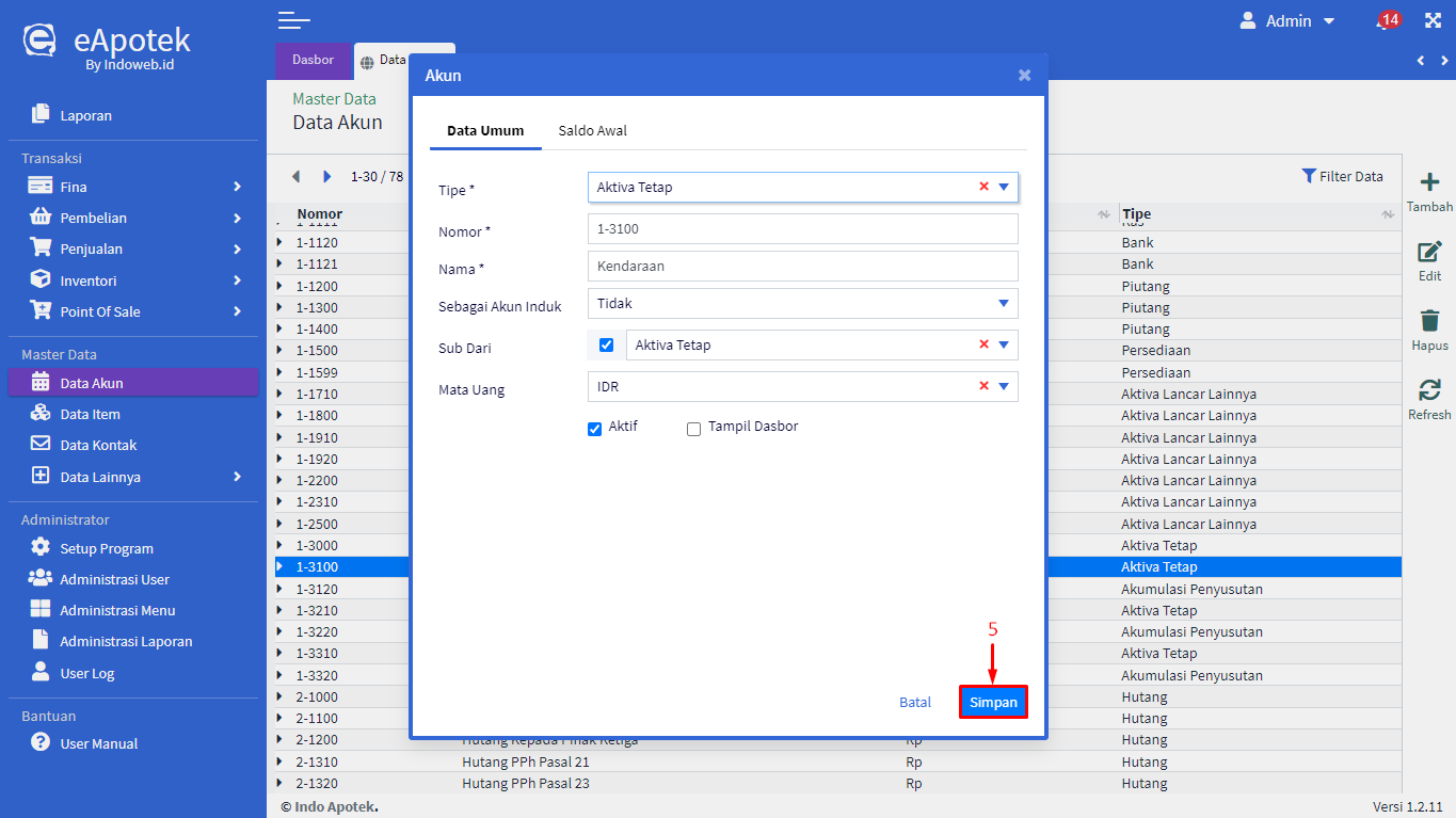- Pada bagian Master Data, pilih menu [Data Akun]