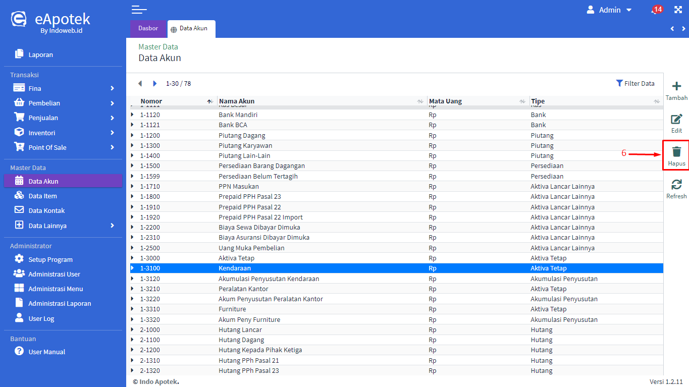 - Data Akun sudah berhasil diedit. Anda juga bisa menghapus Data Akun dengan cara klik [Hapus]