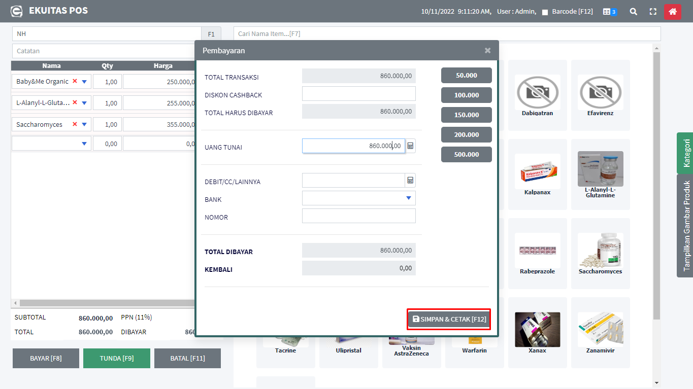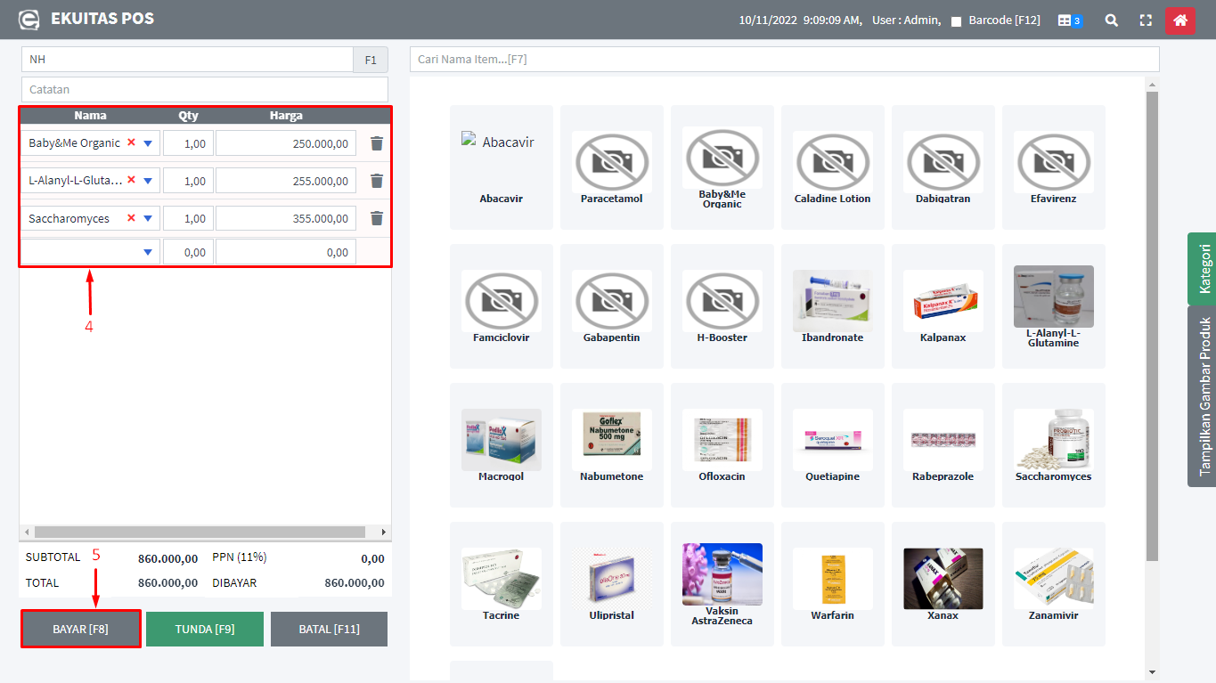 - Akan tampil halaman Ekuitas POS kemudian Hapus atau tambah Item Obat/Barang yang diperlukan