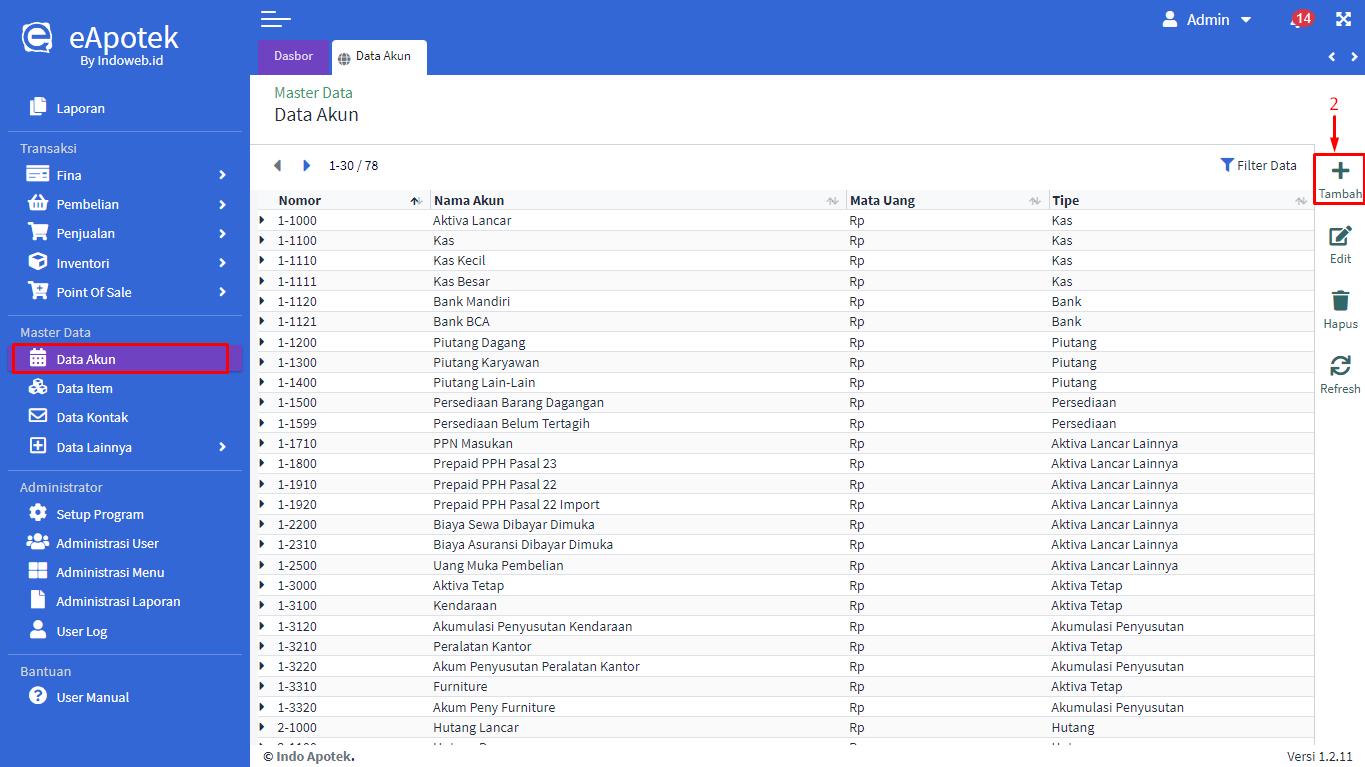- Pada bagian Master Data, pilih menu [Data Akun]
