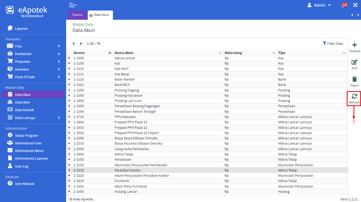 - Klik [Refresh] untuk mensinkronkan data. Tambah Data Akun Keuangan sudah berhasil