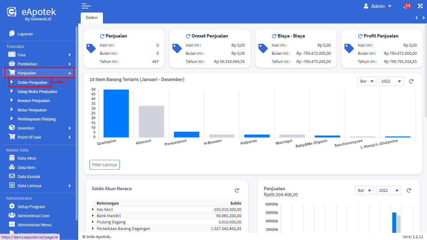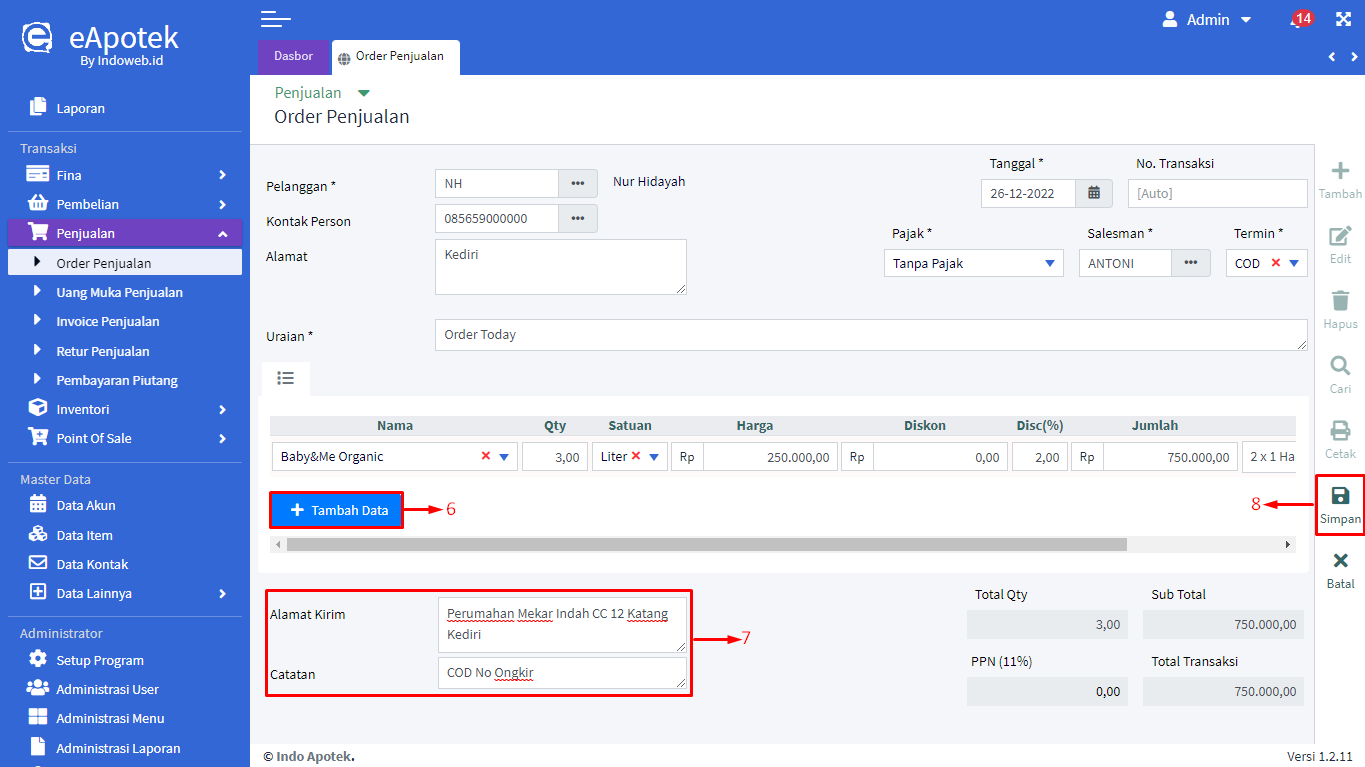 Catatan : Menu Order Penjualan digunakan apabila terdapat customer yang memesan obat menggunakan layanan pesan antar dari apotek.