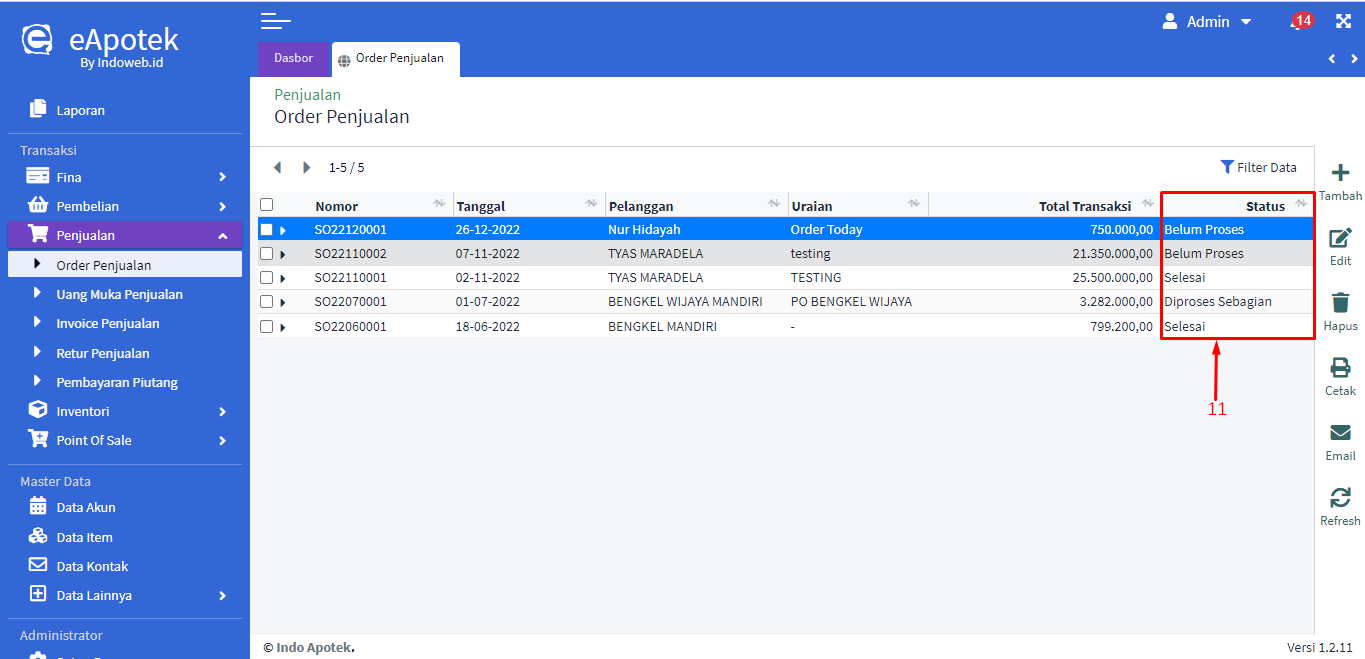 - Tambah Order Penjualan sudah berhasil. Status akan terlihat di halaman Order Penjualan