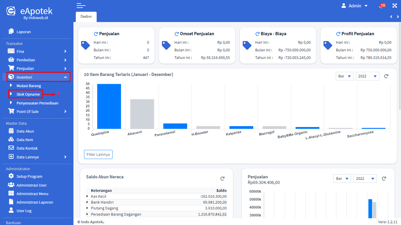 - Masuk ke menu Inventori lalu pilih [Stok Opname]
